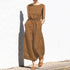 Solid color high waist sleeveless trousers women's fashion casual loose-fitting temperament jumpsuit