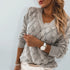 Women’s Kit Feather Pattern Vneck Sweater With Ribbed Hem
