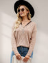 Women’s Open Knit Lace Trim V Neck Top Zipper Sweater