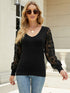 Voluminous lacy sleeves set with sequins elegantly frame this V-neck sweater with plenty of chic potential.