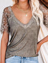 Dreamy lace sleeves with scalloped edges contrast the edgy neckline of this relaxed-fit top, perfect for transitioning from work to the weekend.