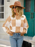 Women's Checkerboard Plaid Crewneck Long Sleeve Sweater