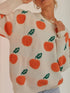 Get this cozy all over orange print with a crew neckline in this slouchy knit sweater, perfect for those cooler days with a relaxed fit.