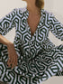 Boasting a striking mid-waist silhouette and artisanal three-dimensional printing, the dress brings a unique visual appeal to your wardrobe. The refined lapel collar adds a touch of sophistication, while the long sleeves ensure versatility across seasons.