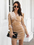 Women's gold velvet twisted bubble sleeve Pleated Dress