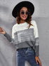 Women's gradient color block off shoulder knitted sweater
