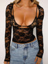 Women's new sexy hottie see-through lace top low-cut high-elastic tight top long-sleeved inner wear
