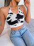Women's Sexy Cow Pattern Waist Sling Cropped Knitted Sweater