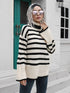 Women's Striped Side Slit Turtleneck Mid Length Sweater