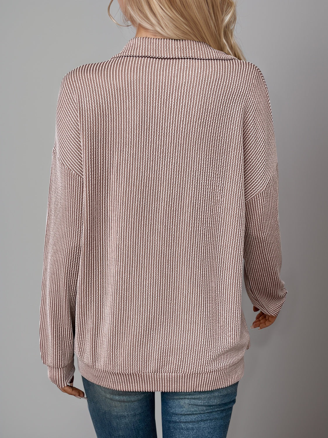 Double Take Striped Half Zip Long Sleeve T-Shirt
