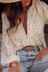 Frill Lace Detail Printed Tie Neck Long Sleeve Blouse