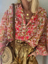 Ladies Print Fashion Casual Floral V Neck Button Down Long Sleeve Shirt