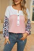 Leopard Color Block Buttoned Top