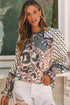 Mixed Floral Geometric Print Ruffled Long Sleeve Blouse