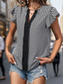 New contrasting color vertical stripe ruffle sleeve pullover shirt