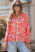 Printed Tie Neck Flounce Sleeve Blouse