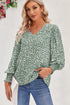 Printed V-Neck Smocked Lantern Sleeve Blouse