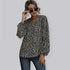 Women’s Loose Fit Leopard Print Vneck Blouse With Long Puffed Sleeves