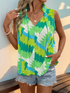 Women's Casual Green Lace-Up Plant Print Sleeveless Shirt