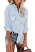 Women's Linen Cotton Washed Water Stripe Single Breasted Long Sleeve Shirt Women