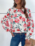 Women's New Round Neck Long Sleeve Floral Shirt Top