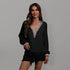 Women's Sweet Dream Solid Color V Neck Lace Trim Polka Dot Puff Sleeve Top