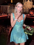Women's Dress Party Green Short Skirt Sexy Hot Girl Waist Suspender Skirt Composite Glitter Dress