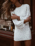 Women's sequin dress wish round neck long sleeve slim pencil skirt