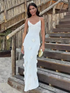 Fashionable and sexy sleeveless slim fit knitted embroidered suspender dress