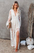 Lace Long Sleeve Deep V Solid Color Hollow Dress