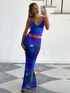 Fashion Print Sexy V-Neck Vest Slim Skirt Suit