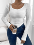 New women's round neck slim fit sexy curved texture long sleeve T-shirt top