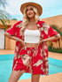 Printed casual resort style cardigan shorts suit