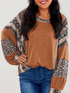 Women Casual Shirt Clashing Stripes Round Neck Wrap Sleeve Loose Top