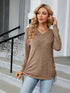 V-neck smocked solid color long-sleeved loose T-shirt top