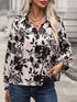 Women's new V-neck lace-up printed shirt