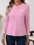 Heart Striped Round Neck Long Sleeve T-Shirt