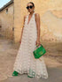 New holiday style halter neck V-neck three-dimensional flower ribbon swing dress