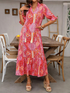 Women's Printed Lace-Up Elbow Sleeve Ruffle Dress