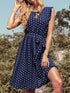 Robe plissée à pois, col rond, manches courtes, mode femme