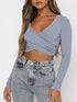 Ce haut est le mélange parfait de plaisir et de flirt. Le haut court à manches longues croisé sur le devant peut être habillé de manière habillée ou décontractée, ce qui le rend parfait pour toute occasion.
