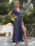 Casual Waist Short Sleeve Polka Dot Slit Dress