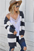Contrast Stripes Open Front Long Sleeve Cardigan
