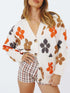 Floral V-Neck Button Up Long Sleeve Cardigan