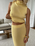 Ladies new style sleeveless high collar woolen top low waist skirt suit