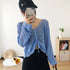 Long-sleeved mesh summer top drawstring hollow V-neck blouse thin section