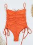 New drawstring one-piece swimsuit solid color pleated sexy suspender bikini