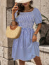 New fashionable puff sleeve striped skirt lapel short sleeve strappy backless dress