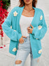New long-sleeved floral cardigan lantern sleeves knitted sweater jacket