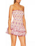 New sexy tube top embroidery hollow ruffle dress with waist slimming printed slim skirt